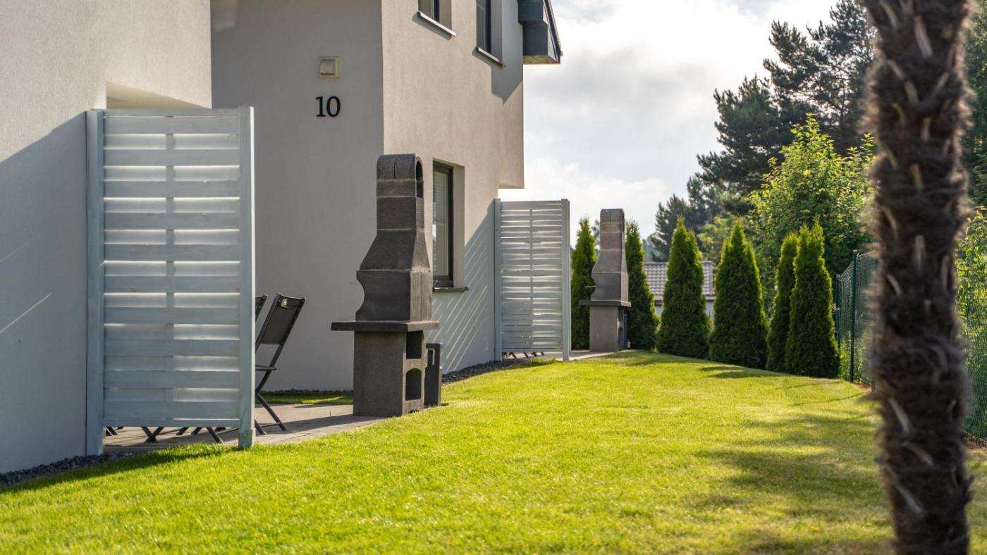 Do dyspozycji Gości jest sprzęt do grillowania, plac zabaw dla dzieci i taras słoneczny. Pozostałe udogodnienia obejmują 2 leżaki i parawan na każdy dom (oferowane bezpłatnie).
